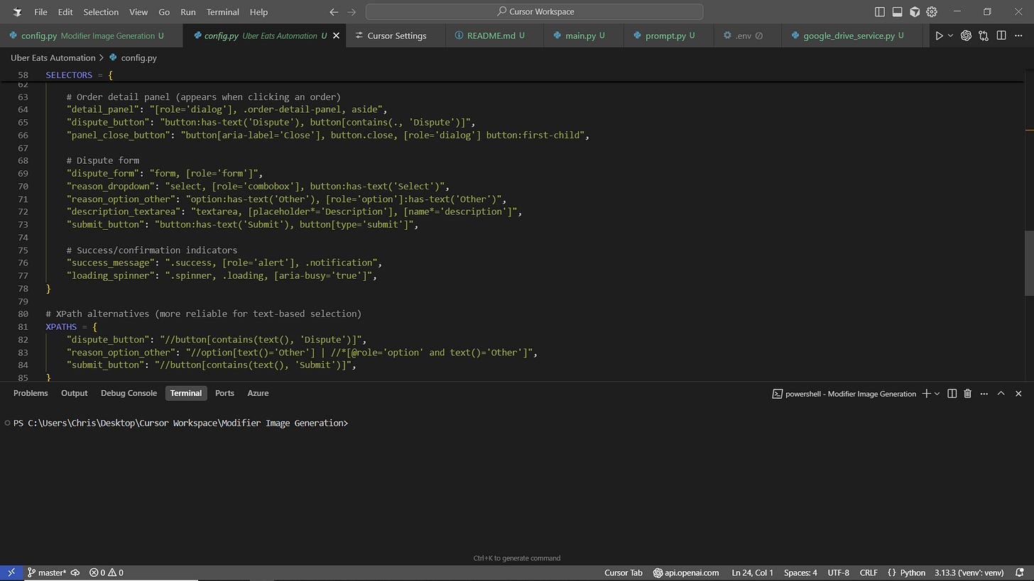This project was completely vibe coded. I used Selenium (should have used Playwright in hindsight) Python library to facilitate clicking on my browser, and I simply select the date range of the chargebacks I want to dispute, and then let the automation script run its course. I am able to choose how many disputes I want to process and away the script goes!