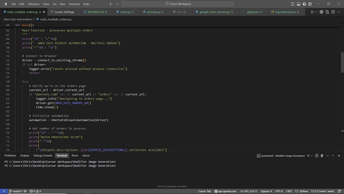 I have created a Python script that automatically files disputes for chargebacks at my company’s restaurant account on delivery platforms. If you don’t know how delivery platforms work, the delivery platforms will often allow customers to create a chargeback and this gets passed on to the restaurant unless contested. If a restaurant contests the chargeback, the order gets reviewed and if found to be a faulty chargeback, the platform eats the cost.